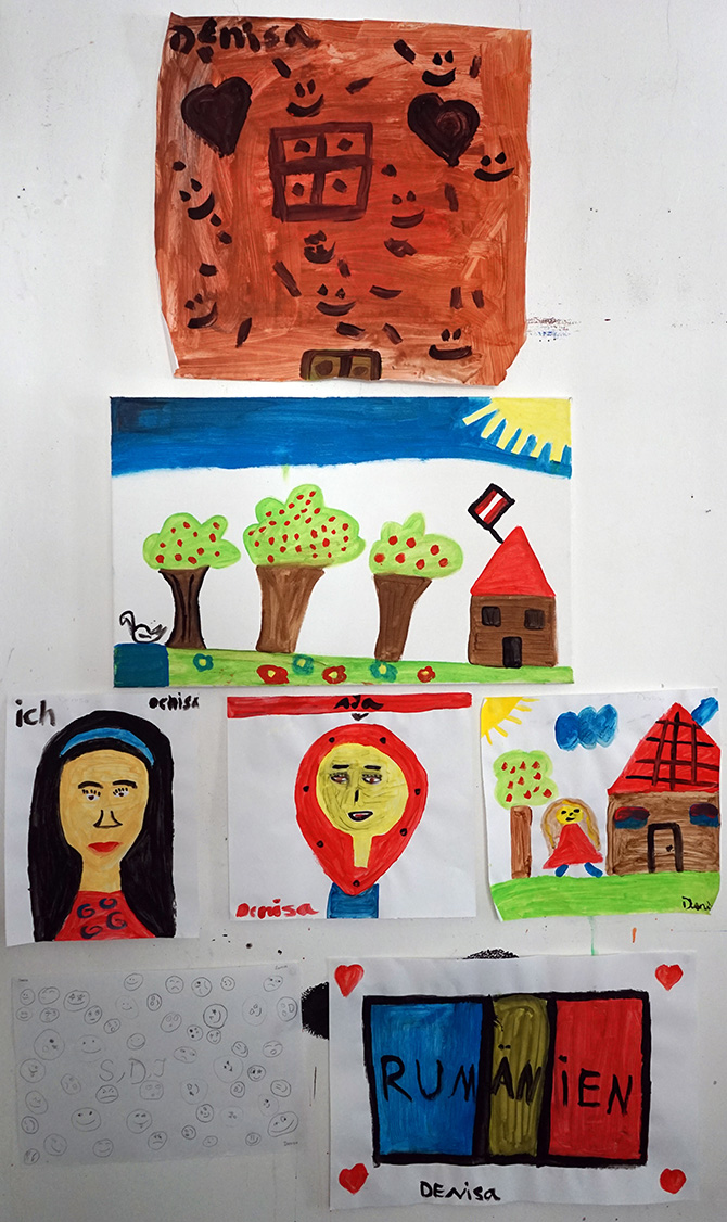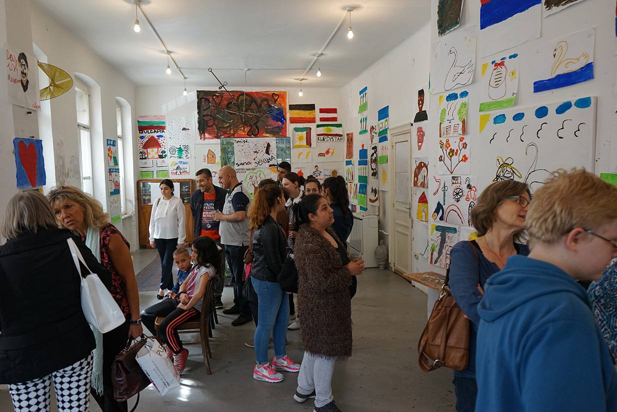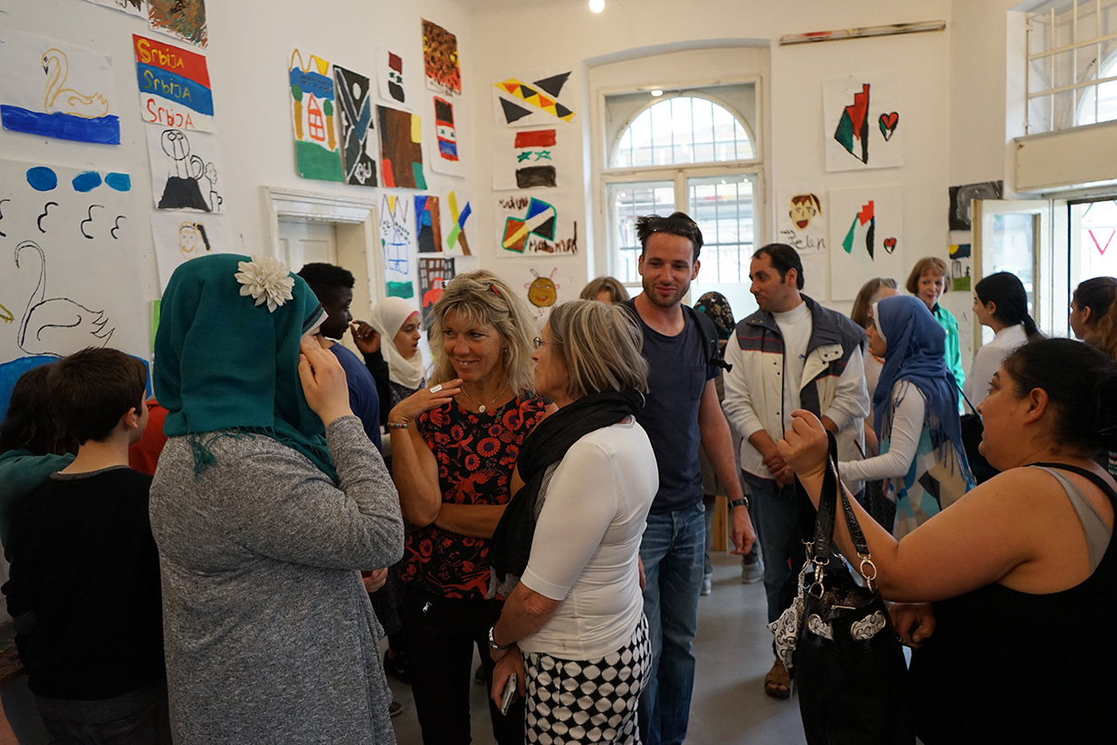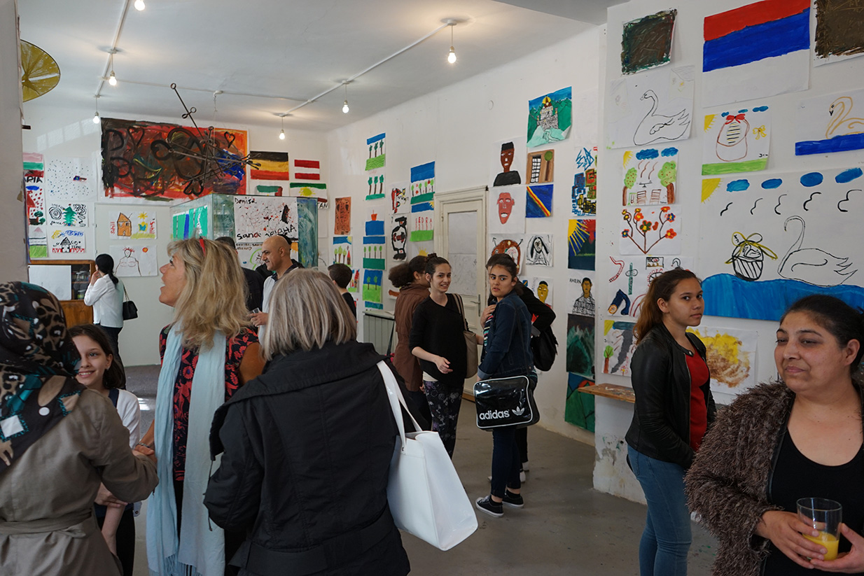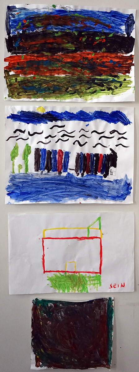 Das Kunstprojekt jetzt hier – Flüchtlingskinder machen Kunst wurde mit der Ausstellung der Werke im KUNSTBETRIEB abgeschlossen. Das zahlreich erschienene Publikum konnte Malerei, Fotos und Videos von und mit Kindern aus 8 Staaten betrachten. Die Werke kreisen um die Begriffe Heimat, Reise (Flucht) und jetzt hier (in Wien).