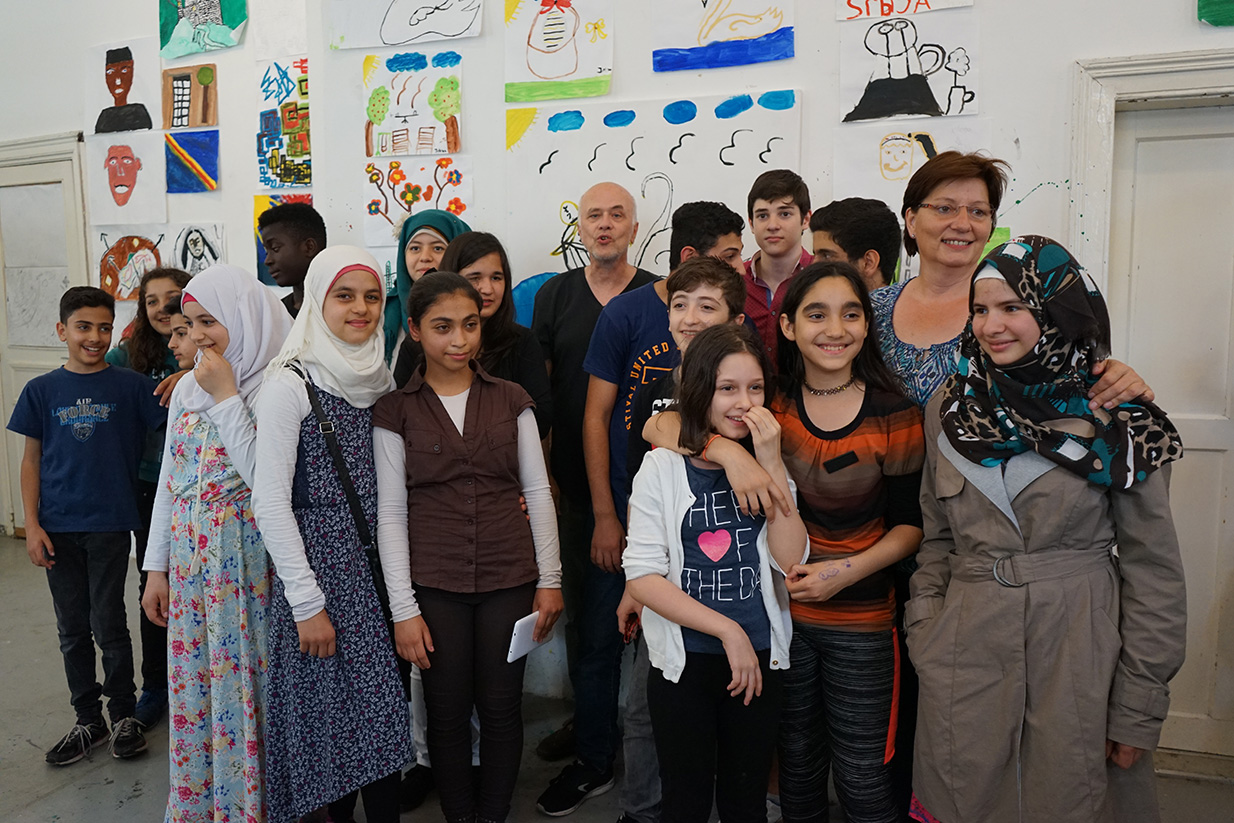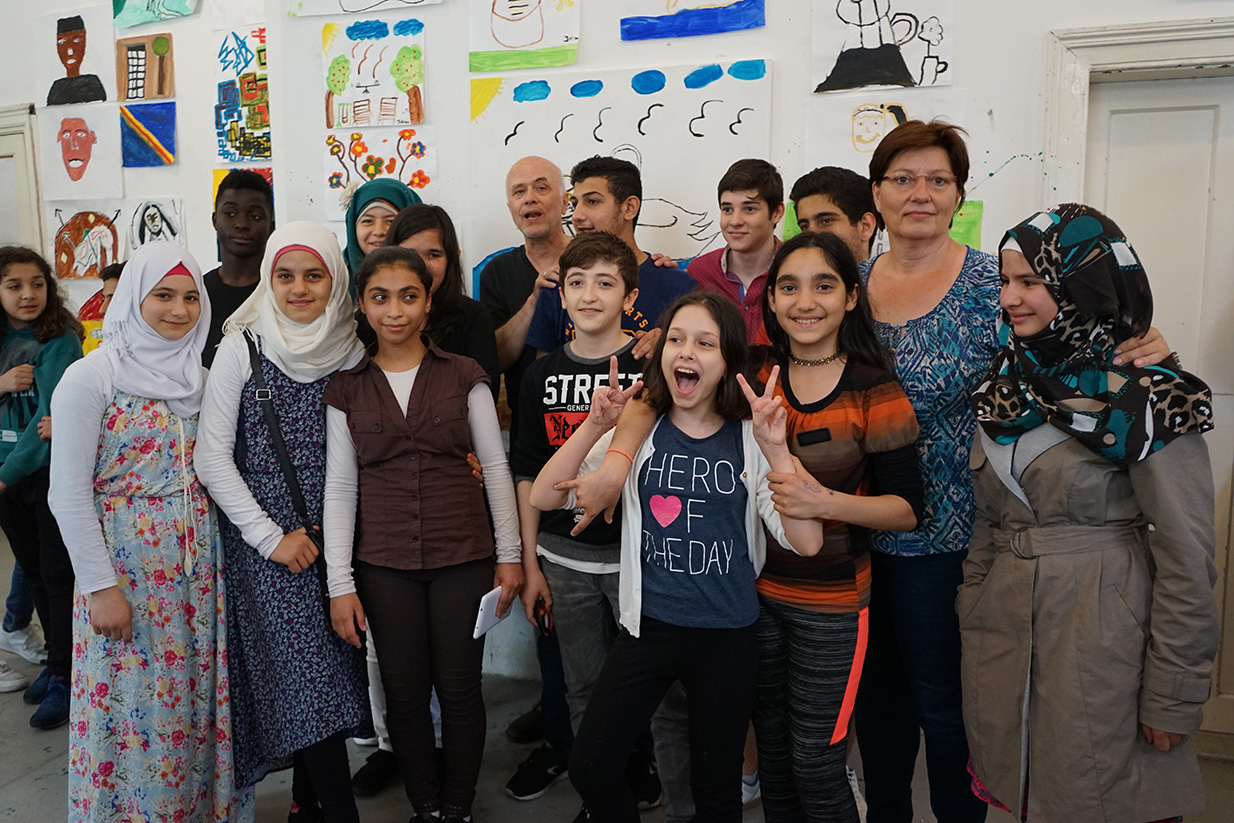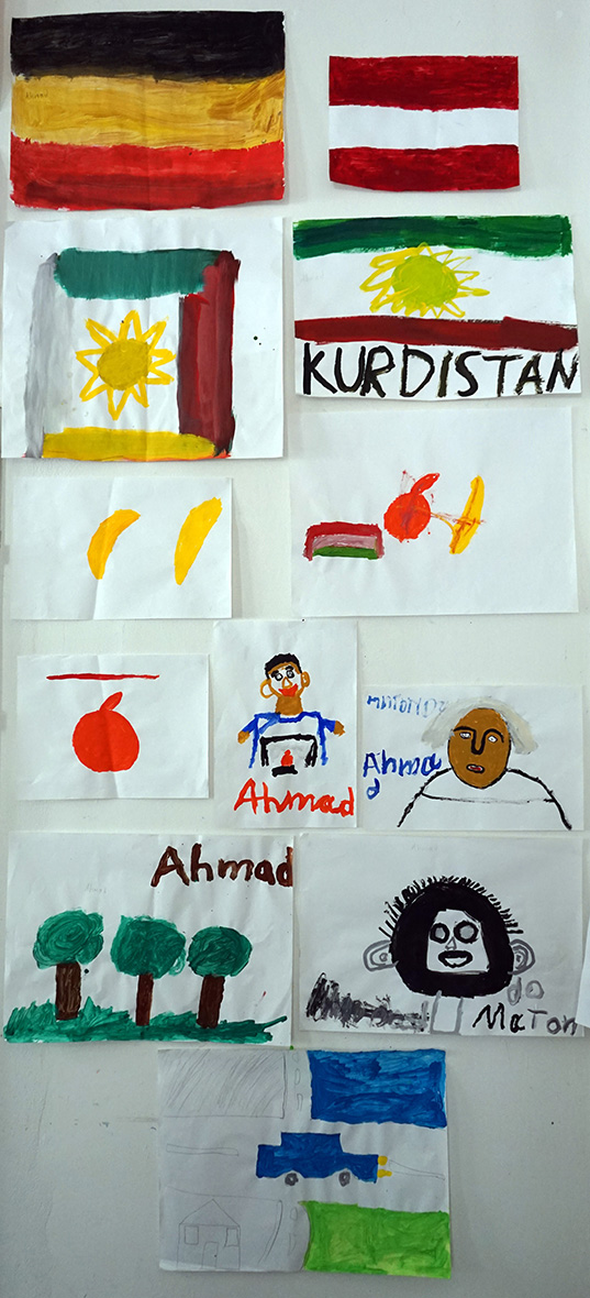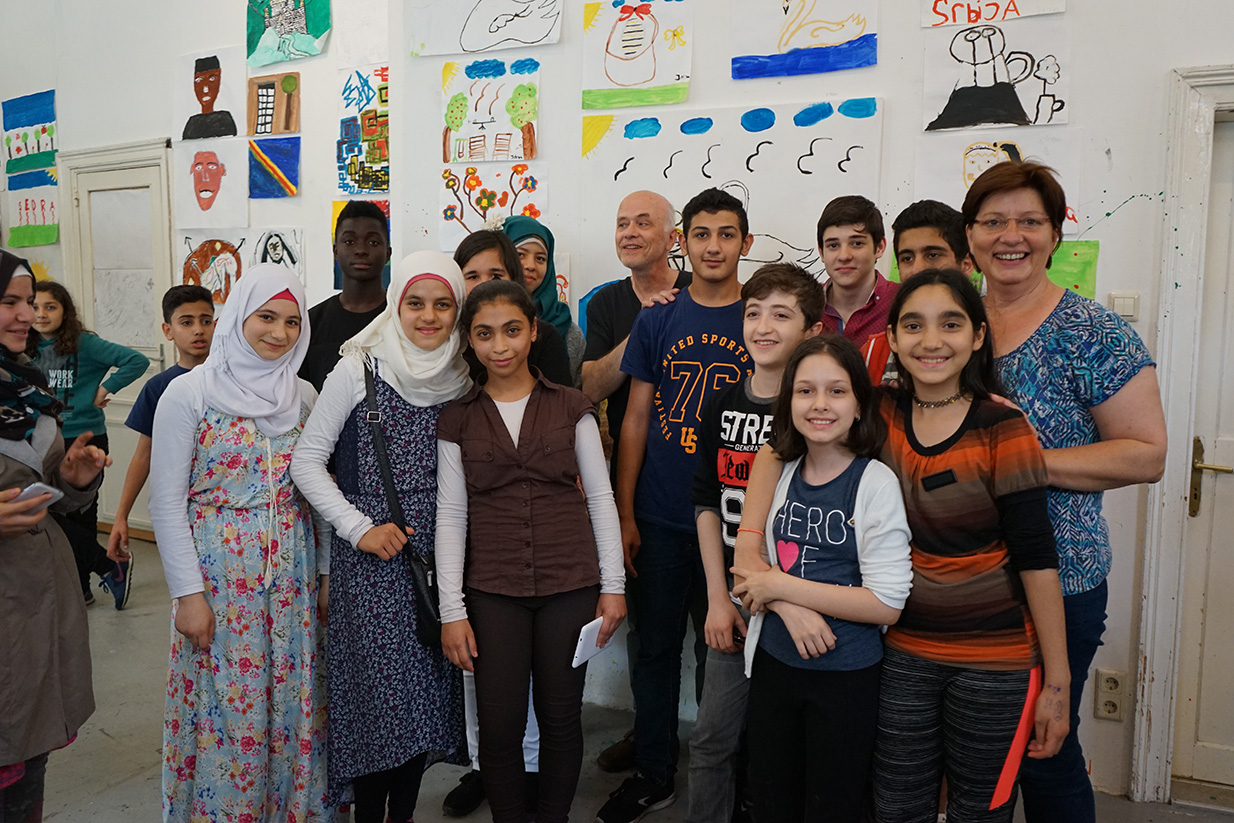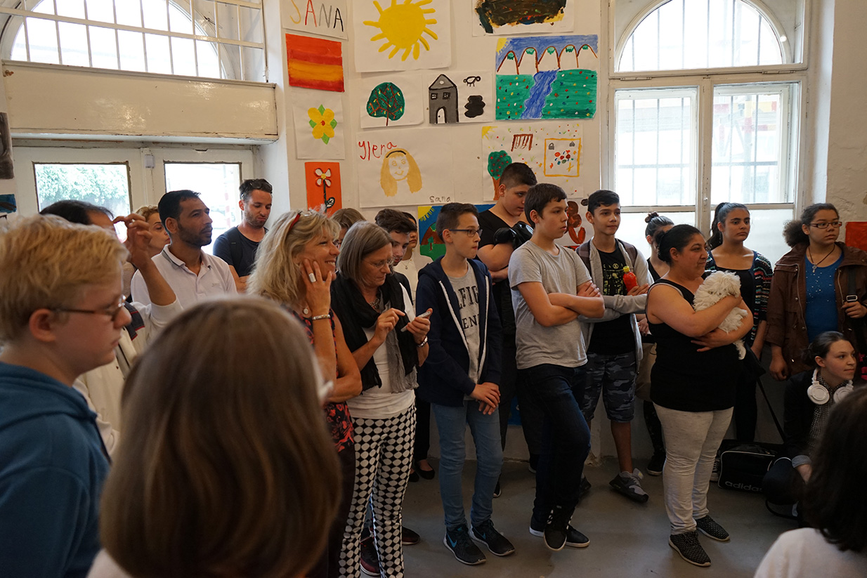 Das Kunstprojekt jetzt hier – Flüchtlingskinder machen Kunst wurde mit der Ausstellung der Werke im KUNSTBETRIEB abgeschlossen. Das zahlreich erschienene Publikum konnte Malerei, Fotos und Videos von und mit Kindern aus 8 Staaten betrachten. Die Werke kreisen um die Begriffe Heimat, Reise (Flucht) und jetzt hier (in Wien).